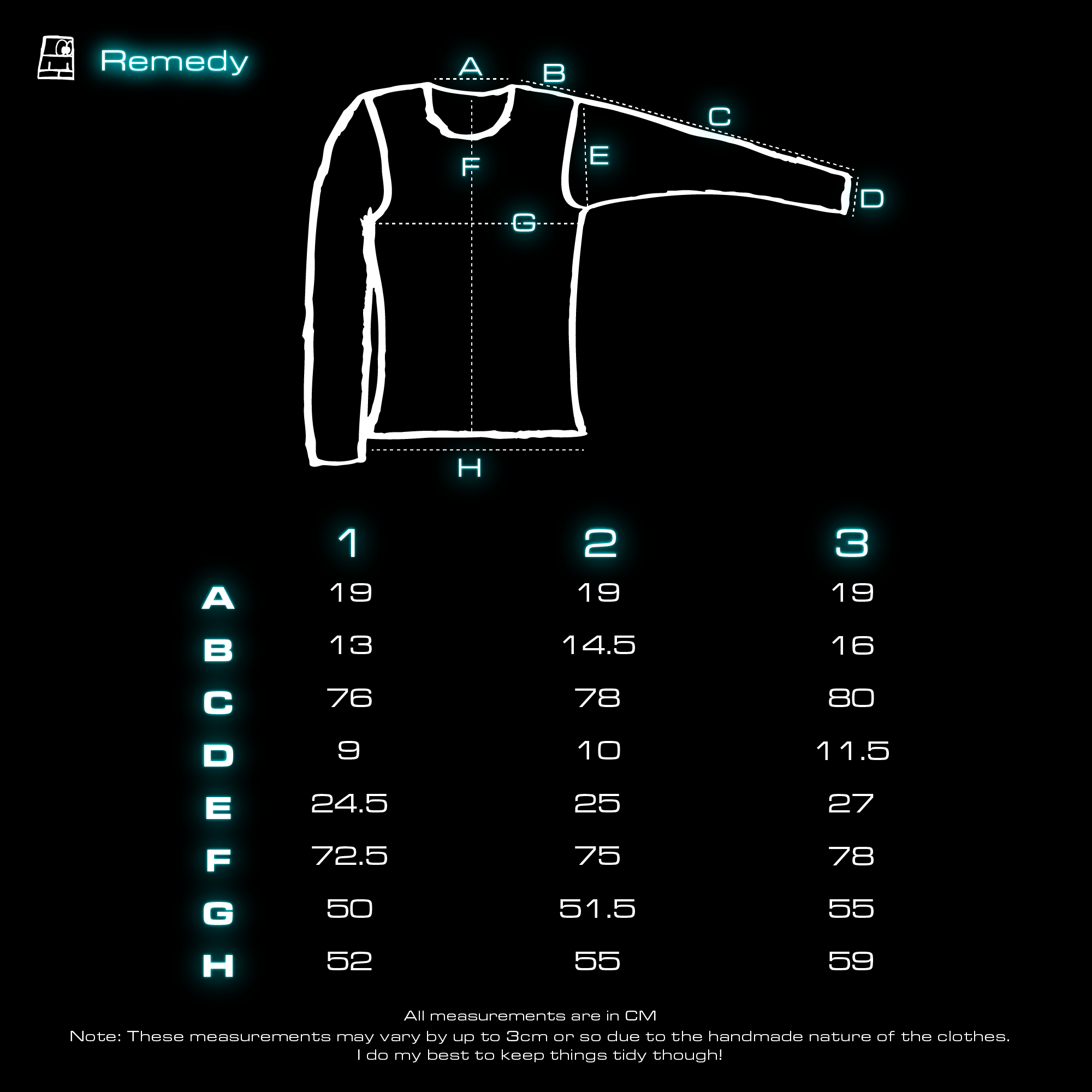 Right now, every piece of clothing I sell is entirely handmade by myself, from the pattern drafting to the sewing to the packaging. Due to this, every single item will have their own imperfections and incosistencies. This does not affect the quality of the piece, it just adds a bit of a human touch to it :)